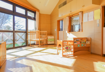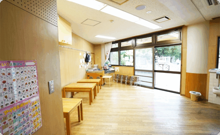 0~2歳児クラスでは2階が保育室となりますので玄関から入室いただき、各保育室入口にてお仕度をお願いしています。1階の幼児クラスでは、テラスよりお子さんの受け渡しとなります。いずれも保育士に直接お子さんを受け渡しいただく際、ご家庭での様子を聞き取りしています。